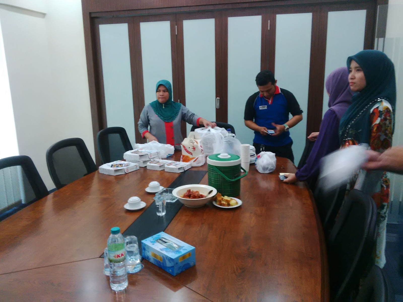Nampak sangat muka si pejal excited nak makan pizza :D hahahaha..nie kitorg buat makan2 nie dekat bilik meeting room...semua org dh kluar lunh...so kitorg je laa lunch dlm ofis...memang tk kluar...